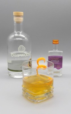 This time around I am using a young Canadian Single Malt Whisky, Macaloney Caledonian Invermallie – Portuguese Re-charred Red Wine Barrique (that’s a mouthful isn’t it) paired with Burwood Dry Gin which is made in Calgary.  Hopefully many of you will find the improved version of my cocktail as enjoyable as I do.