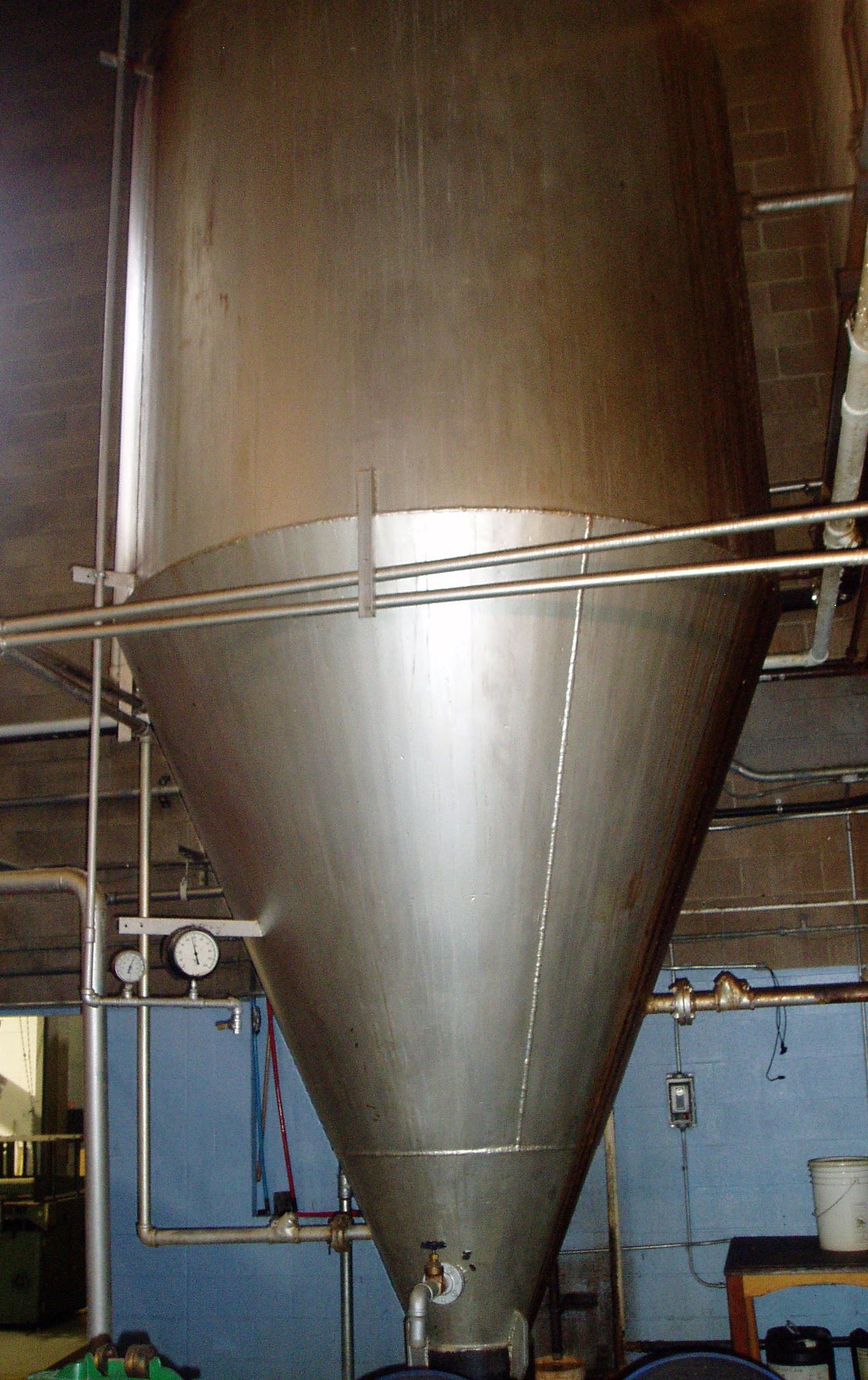 Then it was through the doors into the working distillery. The first picture I snapped inside the plant was of the cooker. The stainless steel cooker is filled with locally grown grain. Water is added and the grain is cooked under pressure into an oatmeal like porridge (except that it is wheat or rye not oats). Wheat and rye are the primary grains distilled at Highwood. The wheat distillate is the primary distillate used to make Vodka and Canadian Whisky. I was told that in addition to all of the wheat used in the distillation being grown locally; the end byproducts of the  distillation are made into livestock feed. Highwood tries to support the community which they inhabit by supporting local producers and industry.