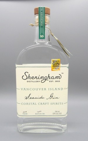 Sheringham Seaside Gin is produced from B.C. grown white wheat and malted barley, natural botanicals and sustainable hand-harvested local Winged Kelp (Alaria marginata). Named botanicals on the back of the bottle also include, Juniper, Coriander, Citrus, Rose, Anise and Lavender. The spirit has won a string of awards, a Silver Medal at the San Fransisco Spirit Awards in 2017, a CASC Gold Medal in 2018, and in 2019 at the World Gin Awards the spirit was named World’s Best Contemporary Gin.