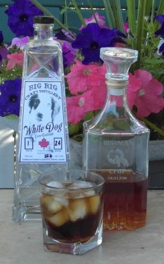 My next step was to pour the rest of my sample into a rocks glass, and add both some ice and some cola. I was surprised at how the cola interacted with the woody corn distillate. The cola with its firm caramel flavour and sweetness was just what was missing. I added a dash of Angostura bitters and the resulting Buckeroo tasted fine. I may have over-oaked the spirit, but I did manged to turn that mistake into a nice summer cocktail.