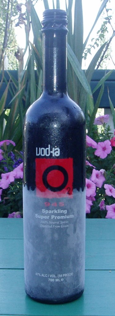 The O2 945 Super Premium Sparkling Vodka arrives in the nice black bottle that is pictured to the left. The bottle design seems to stand out a bit in a pleasing presentation that catches the eye. My only quibble is the rather small metal screw top closure. Like many people I sometimes will toss a bottles of Vodka in my freezer to chill it before I serve it. The small metal screw cap seems rather flimsy. It is short and has only a few threads. This is disconcerting because the cap will expand and contract at a different rate from the bottle it is sealing. As this is a sparkling beverage, any failure of the seal will be especially damaging to the contents of the bottle. I should point out that the Vodka is bottled at 47 % alcohol by volume which for me is a very nice way to start.