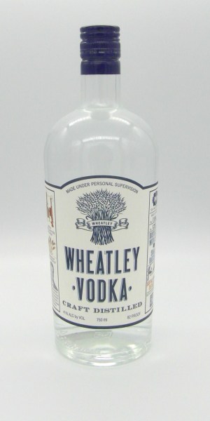 The Wheatley Vodka bottle presentation is shown to the left. We have a medium tall, somewhat stubby cylindrical bottle with a metallic screw cap closure.