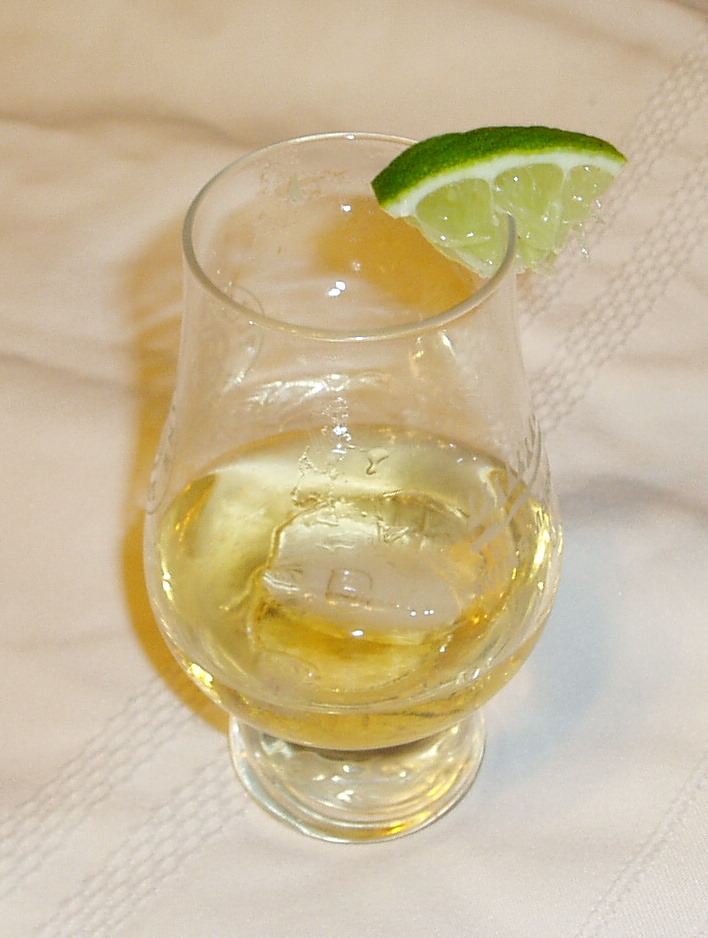 Garnish with a small wedge of lime.